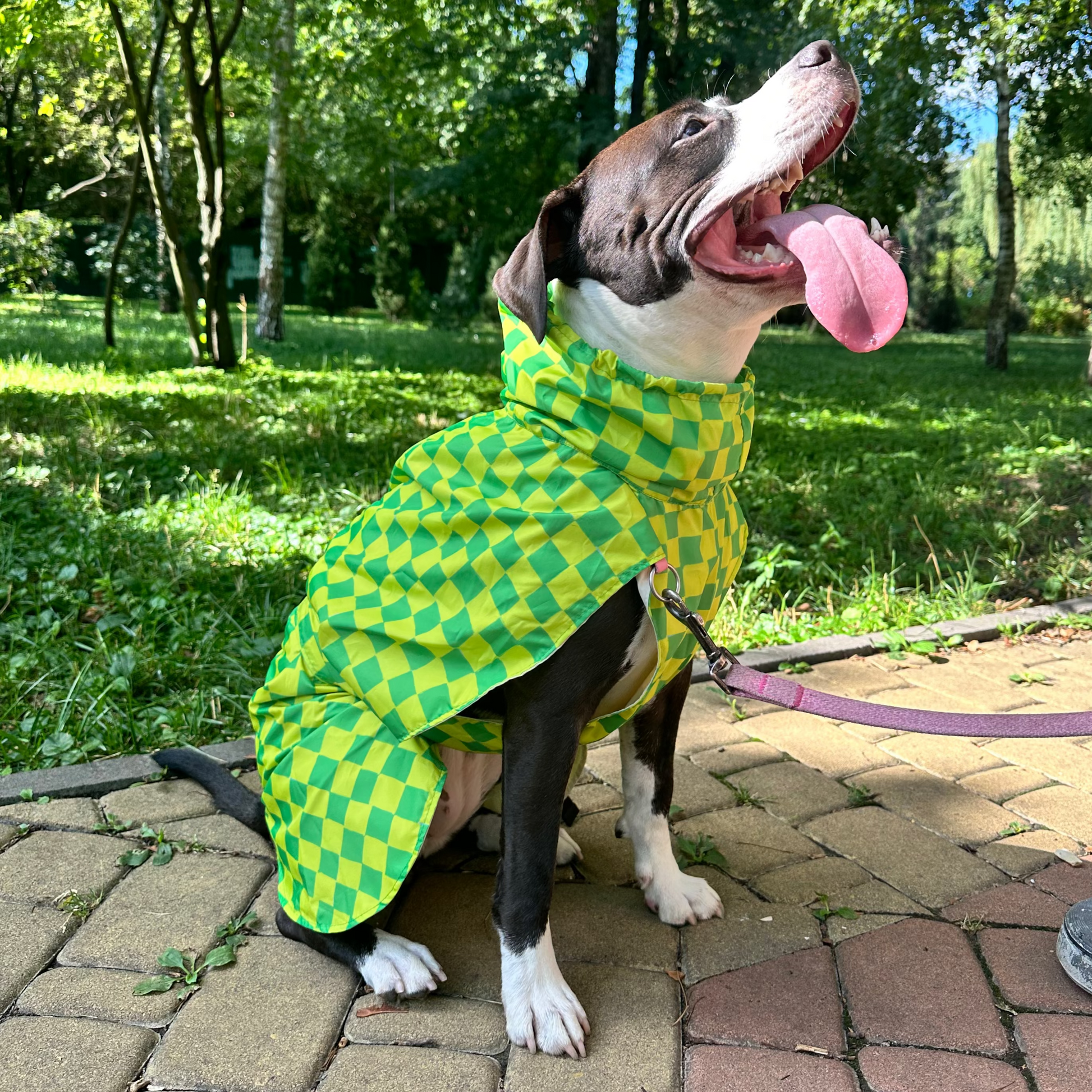Попона для собак Let's Play Оrange-Green - яскрава та стильна, незамінна в мокрі та холодні дні для вашого чотирилапого друга. Ви можете обрати комбінацію з двох кольорів при замовленні попони для індивідуального стилю улюбленця (повідомте менеджеру при замовленні).