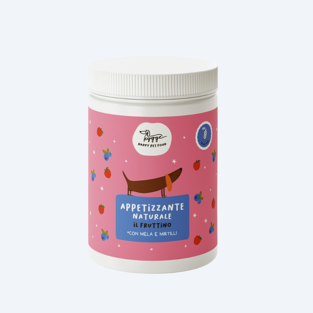 Hygge Fruttino — це натуральна вітамінна добавка, створена для того, щоб м’яко стимулювати апетит та покращувати бажання собак їсти.