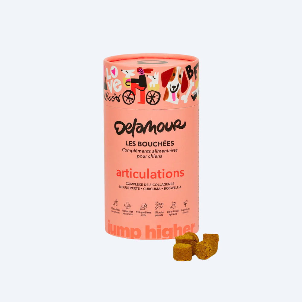 Delamour Paris Les Bouchées – Articulations — це преміальний вітамінно-мінеральний комплекс, створений для підтримки здоров’я суглобів та рухливості собак будь-якого віку. Формула розроблена спеціально для профілактики та зменшення дискомфорту в суглобах, що особливо важливо для активних, великих, літніх собак або тих, хто має схильність до захворювань опорно-рухового апарату.