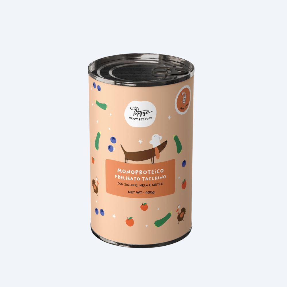 Hygge Монопротеїн Індичка з цукіні, яблуком та чорницею — це ніжний, збалансований та натуральний вологий корм преміум-класу, створений спеціально для собак із чутливим травленням та харчовими алергіями.